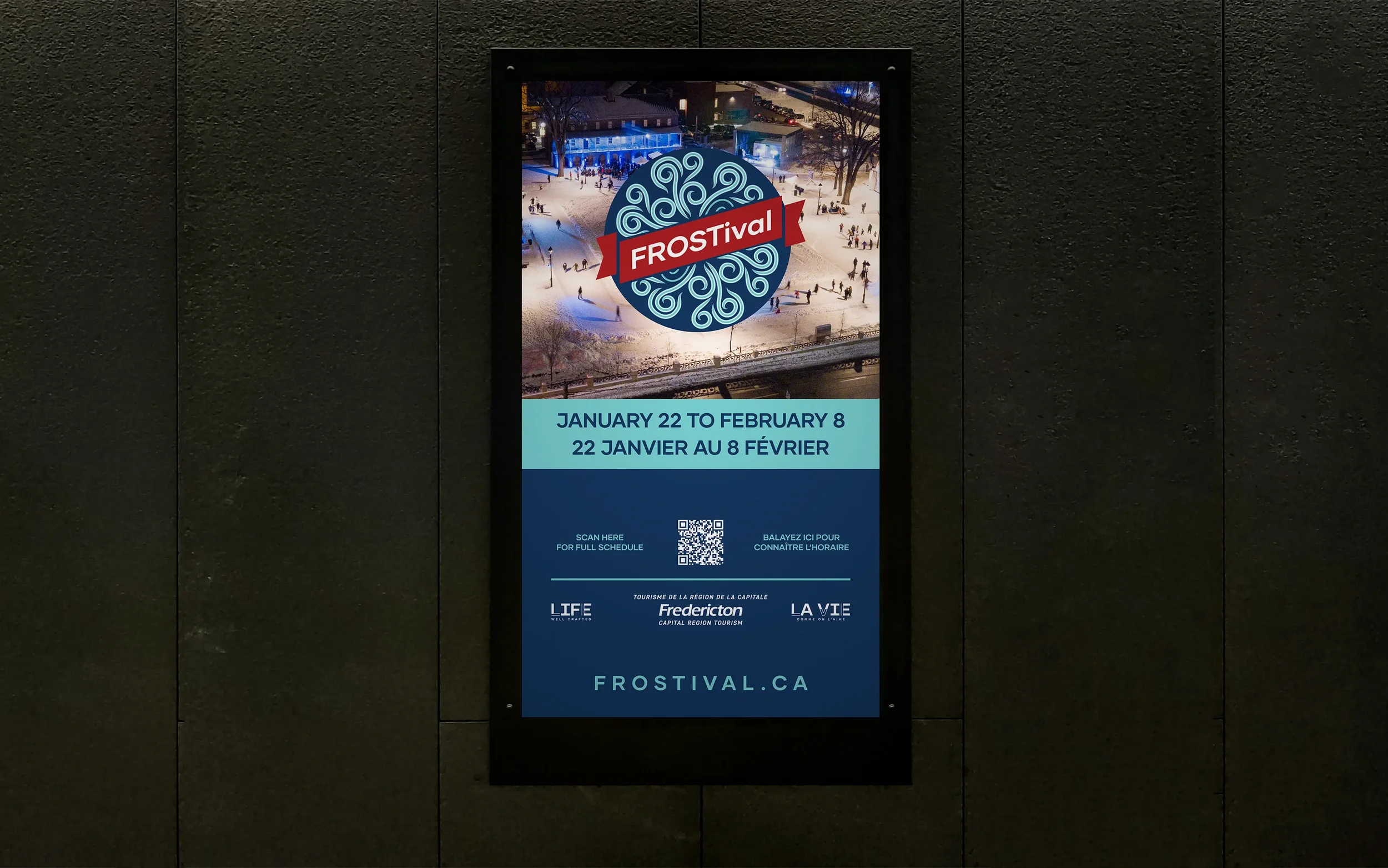 Create a unified bilingual visual identity for FROSTival 2026 that captured the spirit of a Maritime winter and worked across 50+ community events.