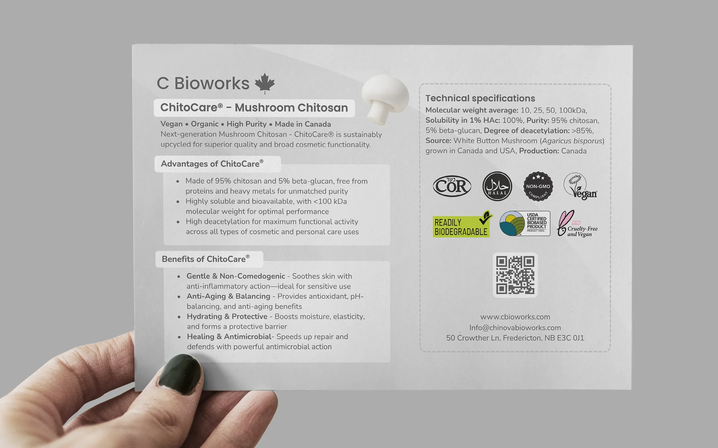 ChitoCare® is a high-purity mushroom-based chitosan developed by Chinova Bioworks, timed to debut at NYSCC Supplier's Day 2025. The challenge was translating a technically dense ingredient story into a visual identity and digital experience that felt premium and legible to a cosmetic industry audience.