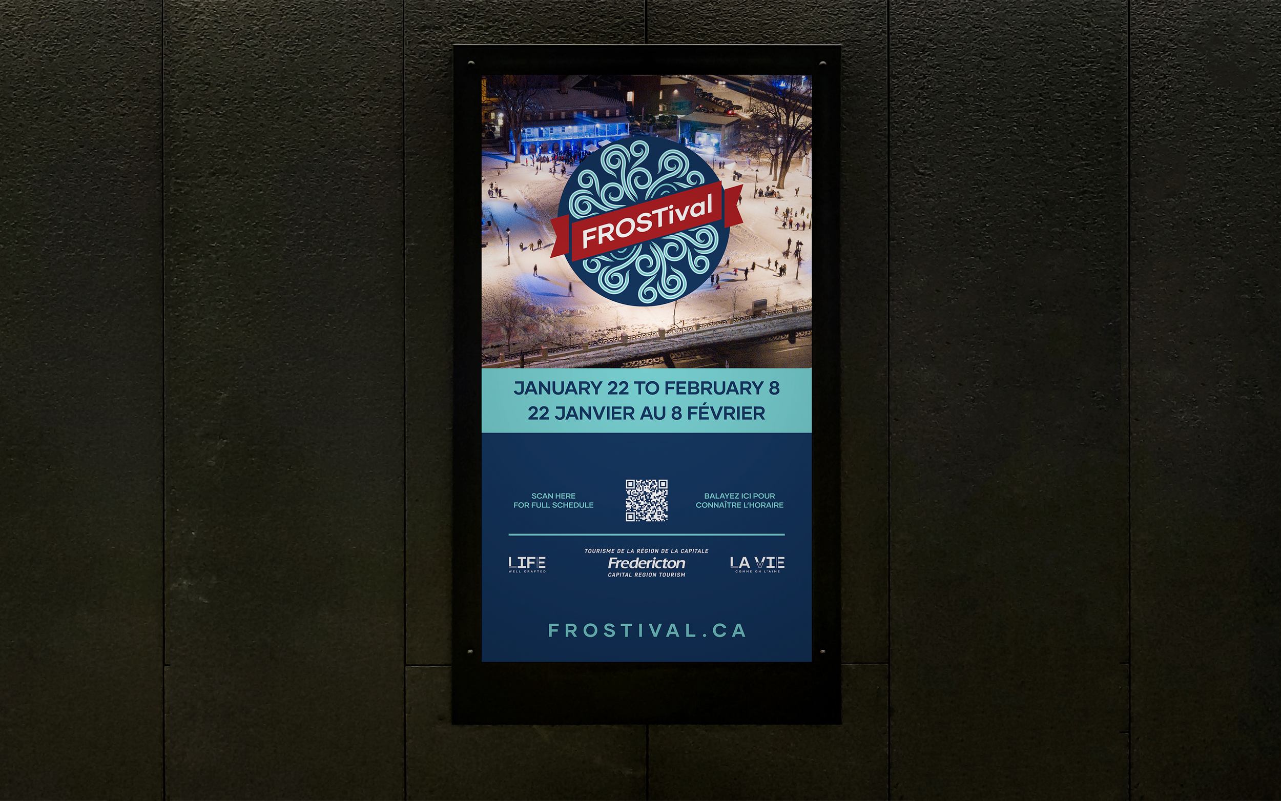 Hosted by FCRT, Frostival 2026 is Atlantic Canada’s premier winter festival. The campaign's objective was to establish a cohesive visual identity capturing the magical Maritime winter atmosphere, effectively guiding attendees through 50+ diverse community events.