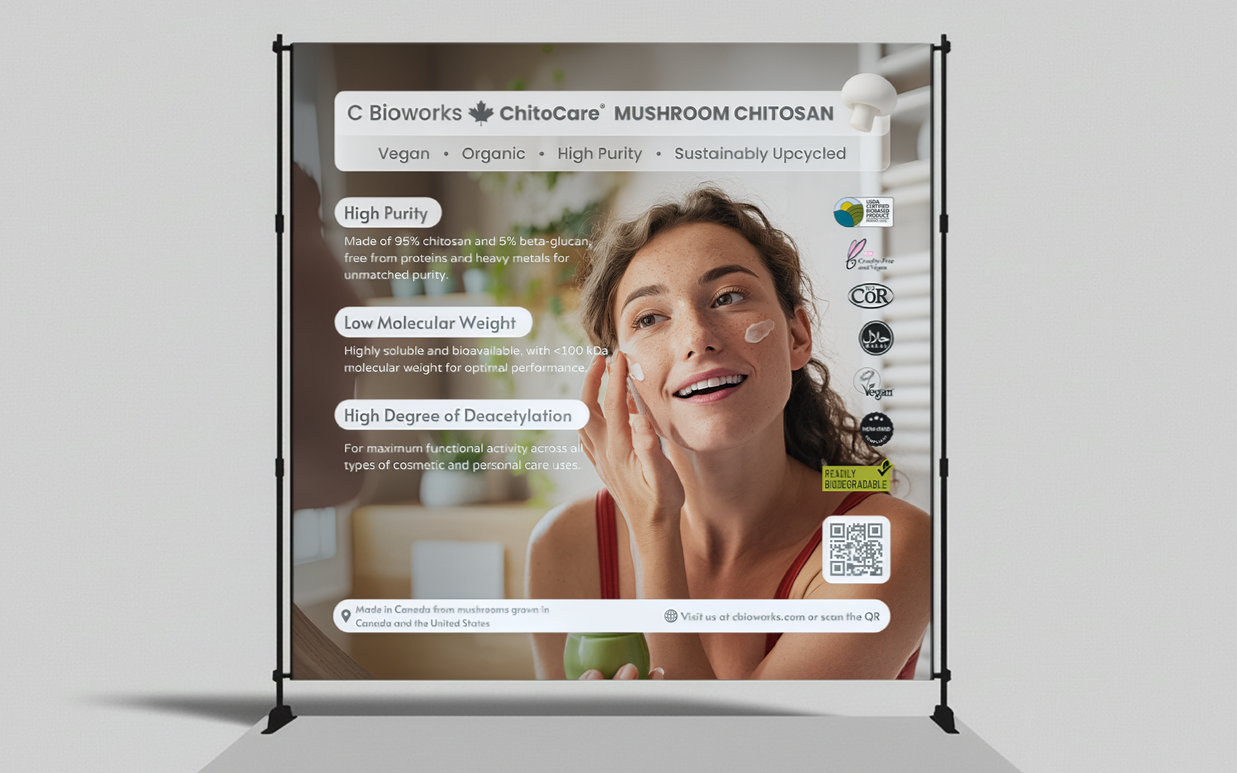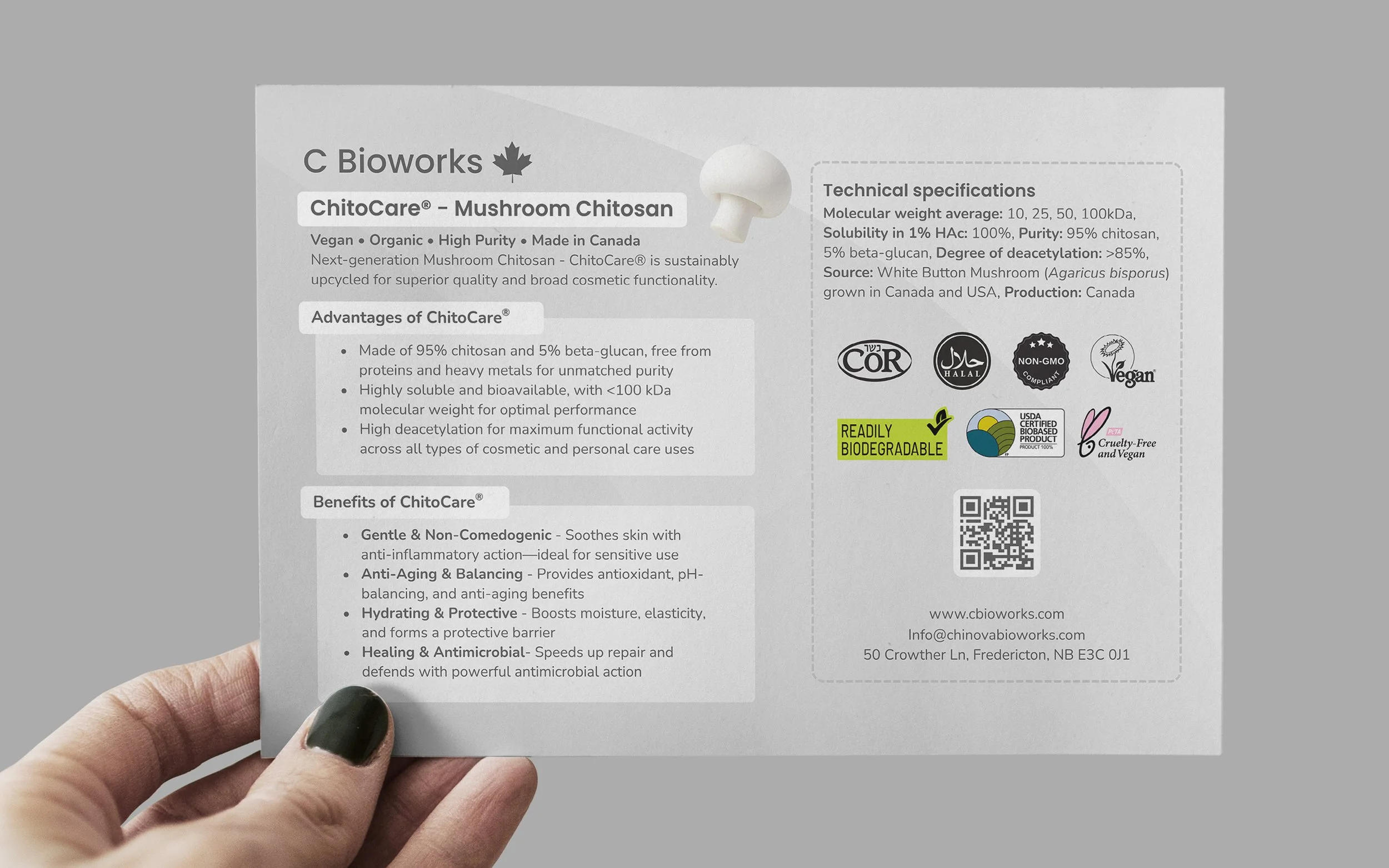 Collaborated with Chinova Bioworks to launch ChitoCare®, a high-purity mushroom-based chitosan. We disrupted the cosmetic market at NYSCC Supplier’s Day by turning complex biotech data into an accessible digital experience highlighting sustainable upcycling.