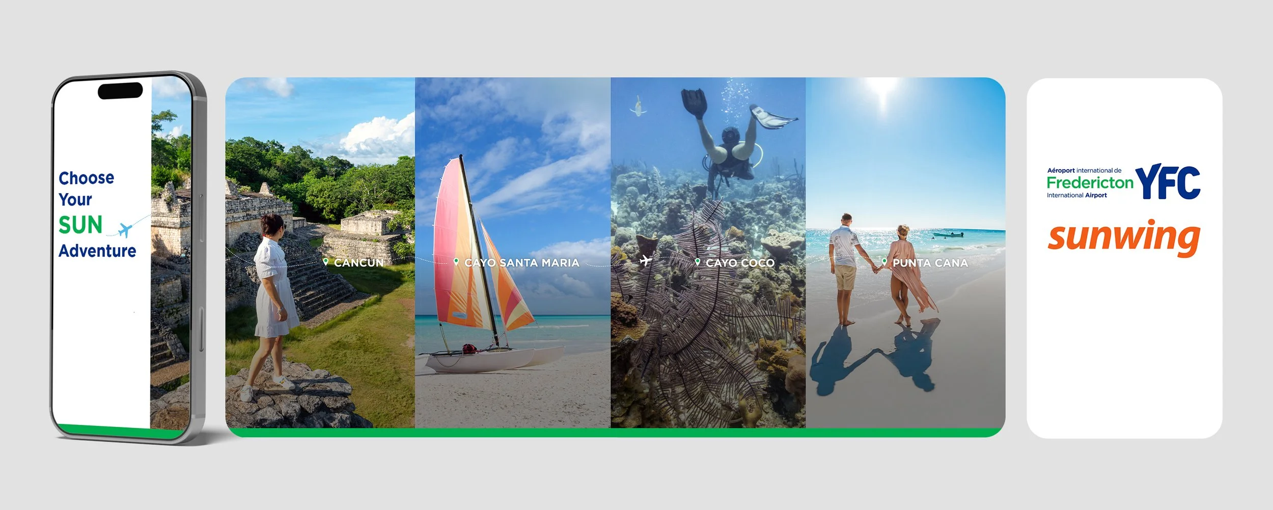 The 2026 "Sun Destination" Campaign was designed to promote the Fredericton International Airport’s (YFC) most ambitious winter schedule to date, featuring new direct routes to Mexico, Cuba, and the Dominican Republic. The goal was to position YFC as the most convenient starting point for winter escapes, emphasizing "Direct to Paradise" while bypassing the stress of major hubs.