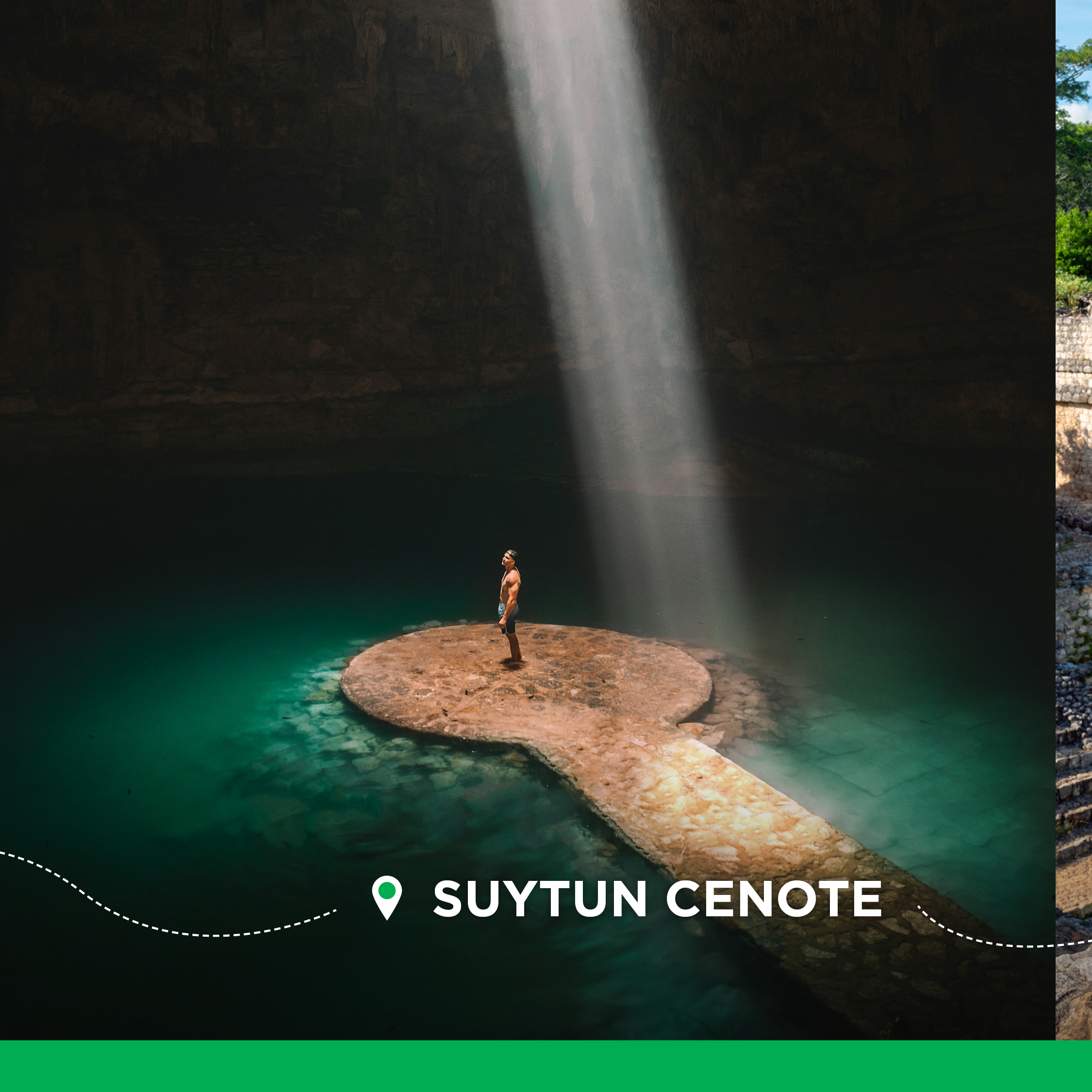 The Air Transat Meta Carousel is a 5-card social media asset promoting direct flights from Fredericton (YFC) to Cancun. It visually showcases the diverse experiences of the Yucatan Peninsula—featuring Cancun Bay, the Suytun Cenote, and Mayan ruins—appealing to a wide range of traveler interests while emphasizing the convenience of local departures.